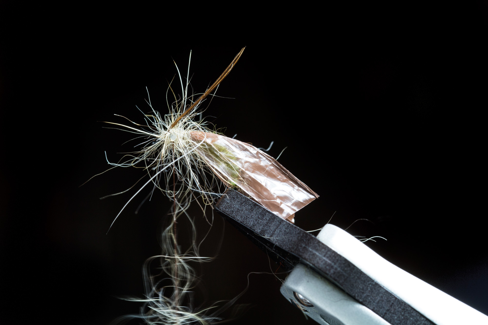 Nella stessa posizione fissiamo un tinsel metallico ultra sottile.